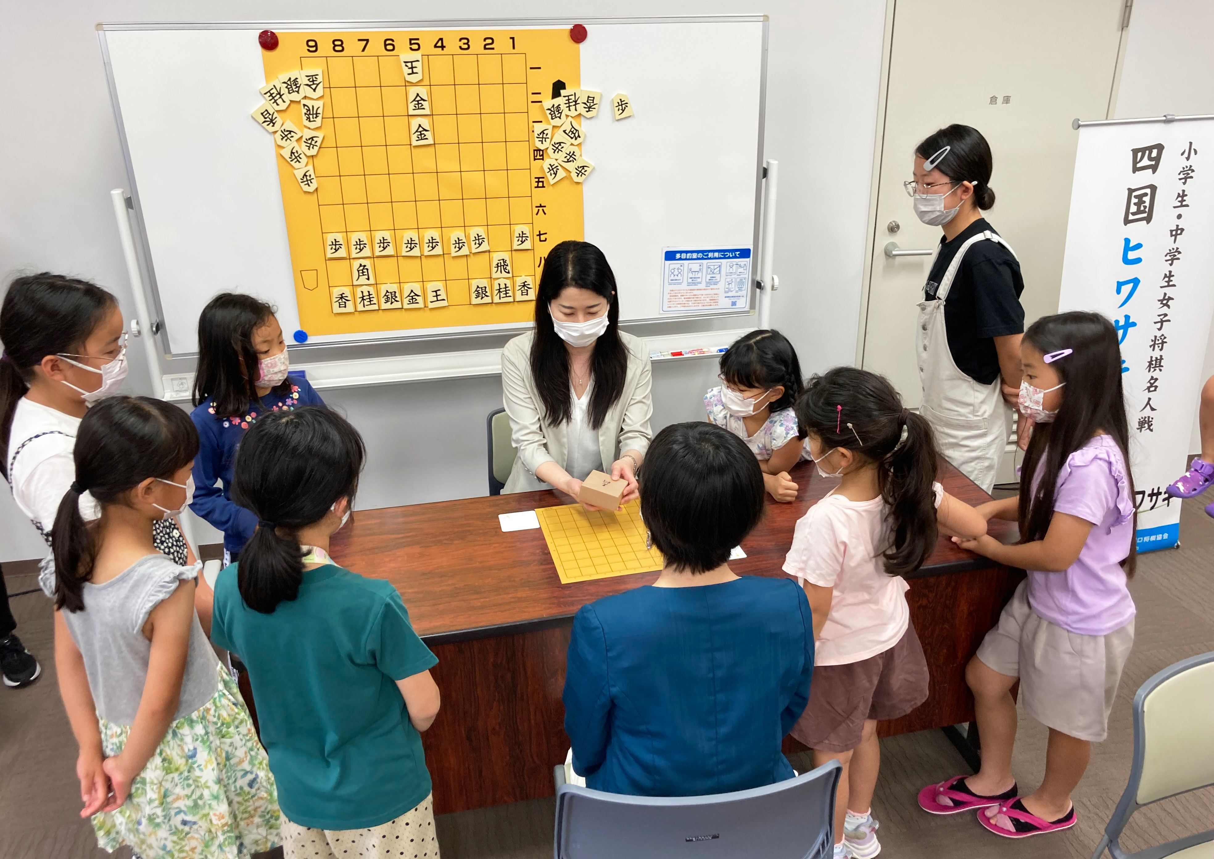 この大会は四国在住の小・中学生の女子を対象とした将棋の競技会で、小学生代表クラス、中学生代表クラスの優勝者は8月21日に東京都で行われる全国大会に代表選手として招待されます。