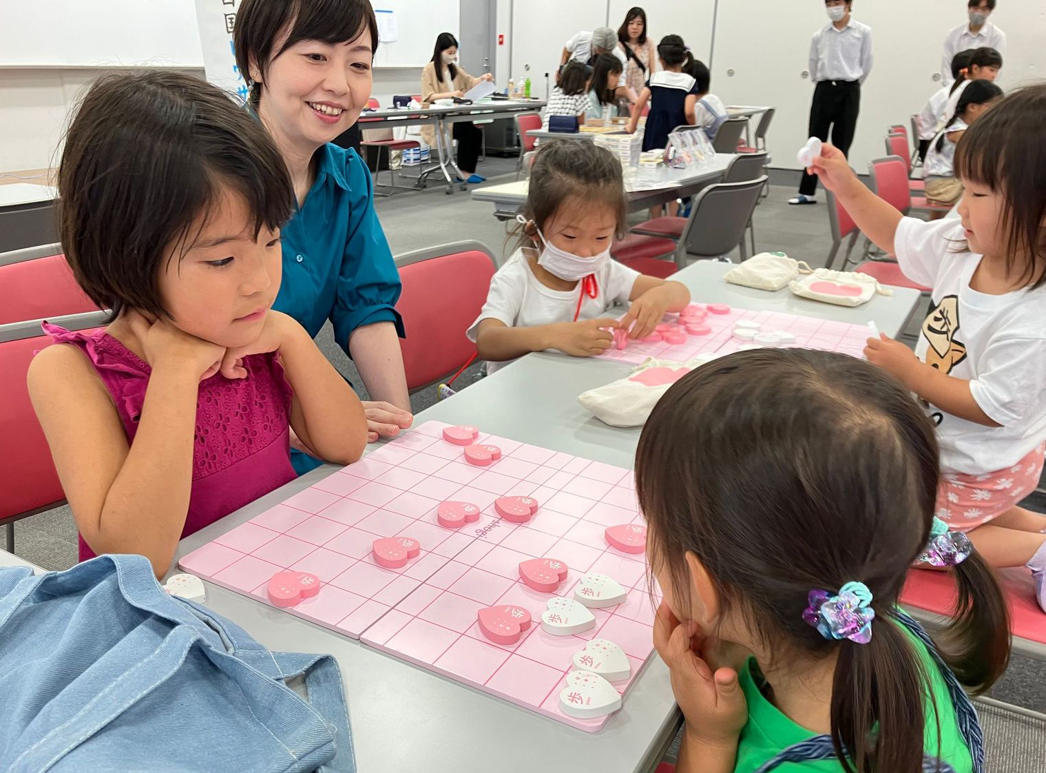 ![]() 親睦クラス(写真提供:(公社)日本女子プロ将棋協会) ![]() 可愛いハートの駒で真剣勝負(入門教室)(写真提供:(公社)日本女子プロ将棋協会) |